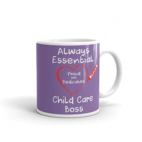 Crayon Heart Big White Font Child Care Boss Light Purple Mug