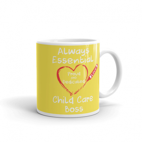 Crayon Heart Big White Font Child Care Boss Bright Yellow Mug