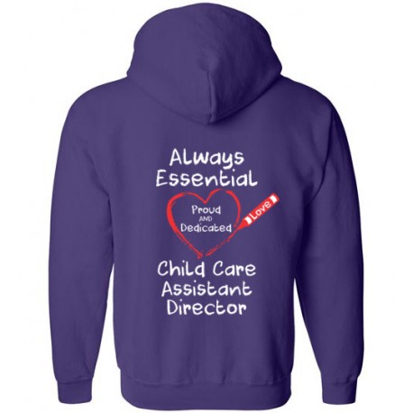 *Logo on Back* Crayon Heart Big White Font Child Care Assistant Director Zip-Up Hoodie