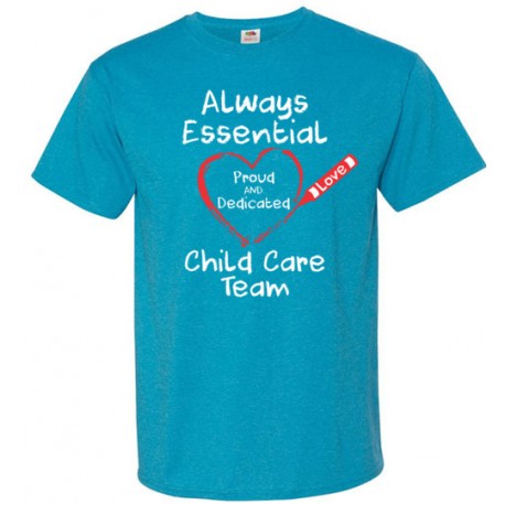 It's about time the world knows and acknowledges how ESSENTIAL child care providers are! Now you can feel recognized and so proud of this fabulous industry that you're in by wearing one of our custom designed T-shirts, hoodies and more. These designs were brought to life by people who LOVE the child care industry and want the the world to know that ESSENTIAL is who they are before, during and even after this pandemic is over.