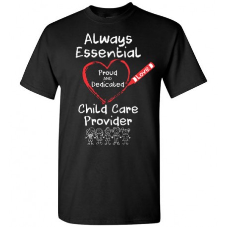 It's about time the world knows and acknowledges how ESSENTIAL child care providers are! Now you can feel recognized and so proud of this fabulous industry that you're in by wearing one of our custom designed T-shirts, hoodies and more. These designs were brought to life by people who LOVE the child care industry and want the the world to know that ESSENTIAL is who they are before, during and even after this pandemic is over.